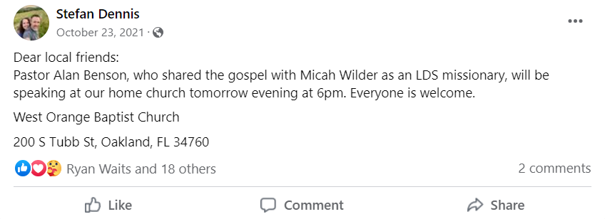 I’ve reached out to Mormon Research Ministry to ask about the full discussion between Micah Wilder and these local ministry leaders, but they haven’t responded.